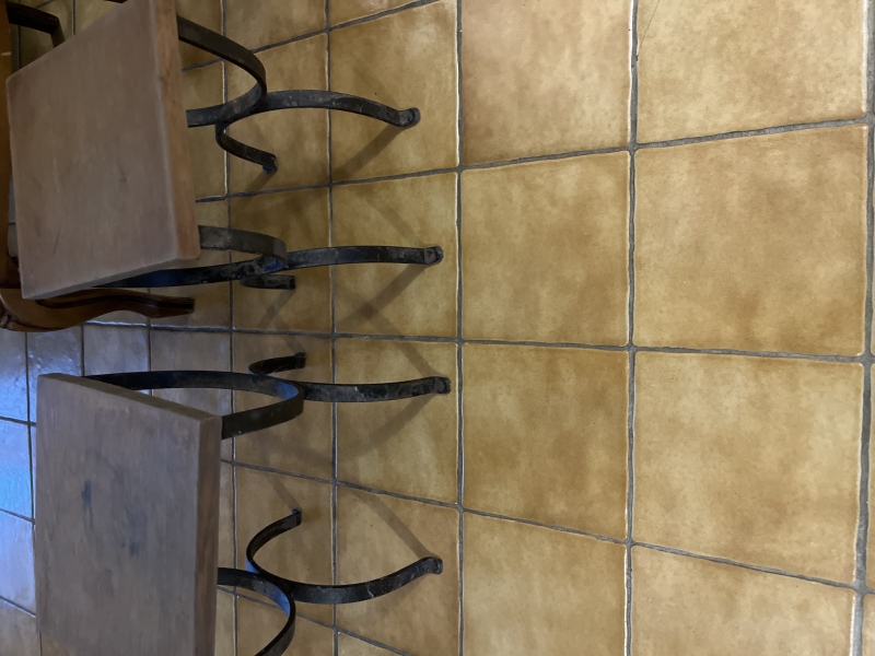 À donner , deux petites tables basses avec pieds en fer Forgé et tablette en bois . En parfait état