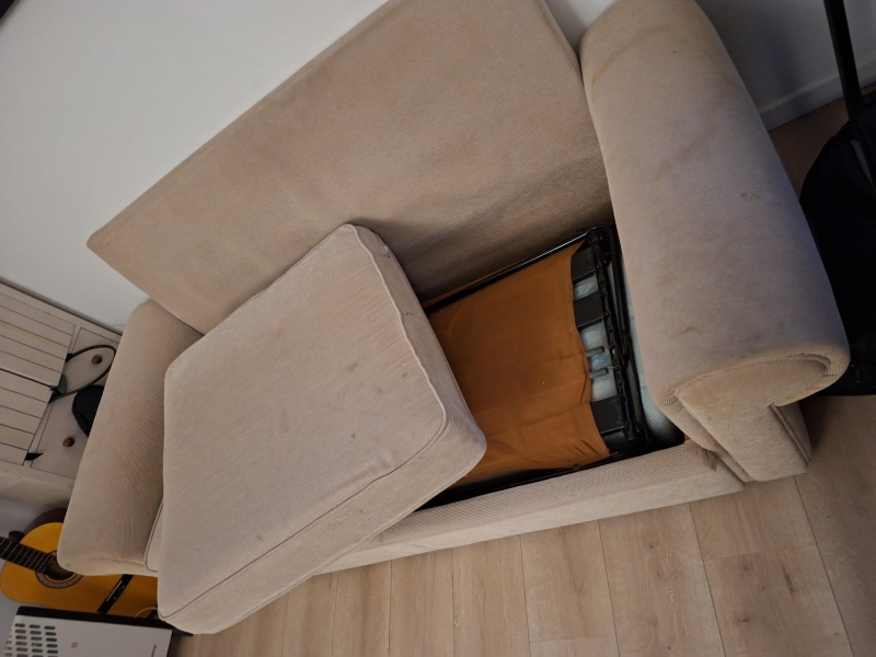 Canape-lit banc droit largeur 185 cm (2 personnes) profondeur 86 cm tissu de couleur beige