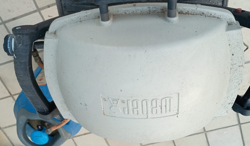-un barbecue gaz Weber pour +/- 4 personnes armature alu; grille en fonte